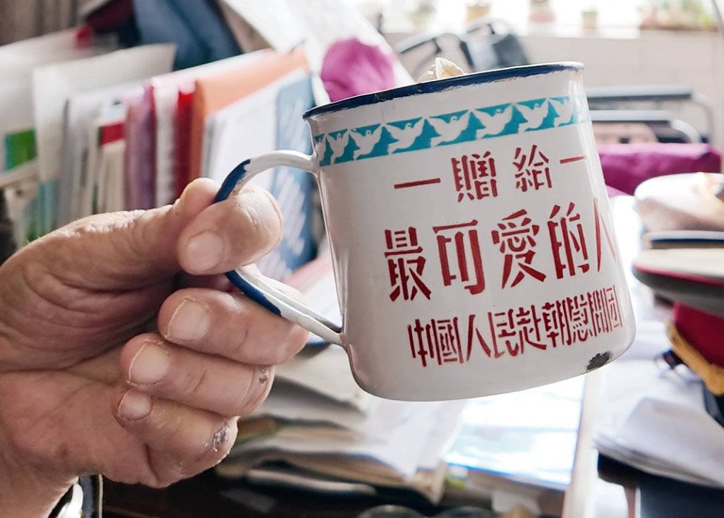 邬大为向记者展示印着“赠给最可爱的人”的搪瓷杯,这也是志愿军的标志之一。封面新闻记者戴云 摄
