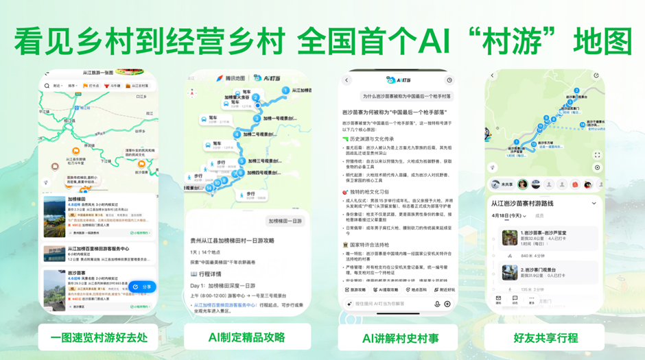 有名更要扬名。AI等数字技术的注入,让原本冷冰冰的坐标变得“会说话”,让乡村服务“最后一公里”从“畅通”向“智能”升级。腾讯地图近期便在此前工作的基础上,联合贵州从江推出了全国首个AI“村游”地图:将涵盖地名信息、历史、村落、民俗、服饰等15个子项目的10000余条实用内容,通过AI技术得以数字化保存与应用,让乡村地名变得可导航、可服务、可消费,将乡村从静态的“地理空间”转化为可动态“经营”的“数字资产”。