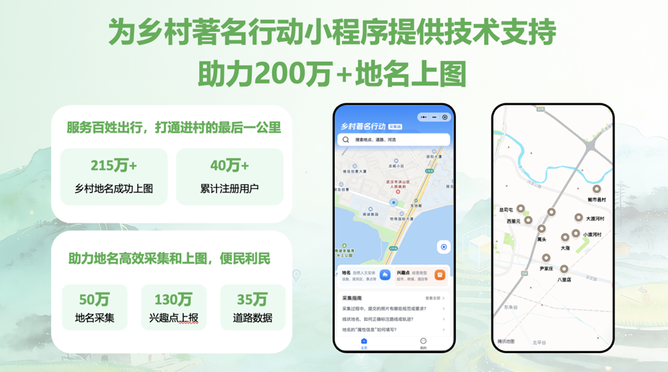 而政策的可行性,依托于真切贴合民情、构建高效体系。“乡村著名行动”在腾讯地图提供的技术支持下,搭建起专属小程序,创新推出“人人都是采集员”模式。基层工作者、村民都能便捷采集地名信息,实现“一次采集、多方共享”,使地图上的乡村地名得以快速丰富和鲜活更新。