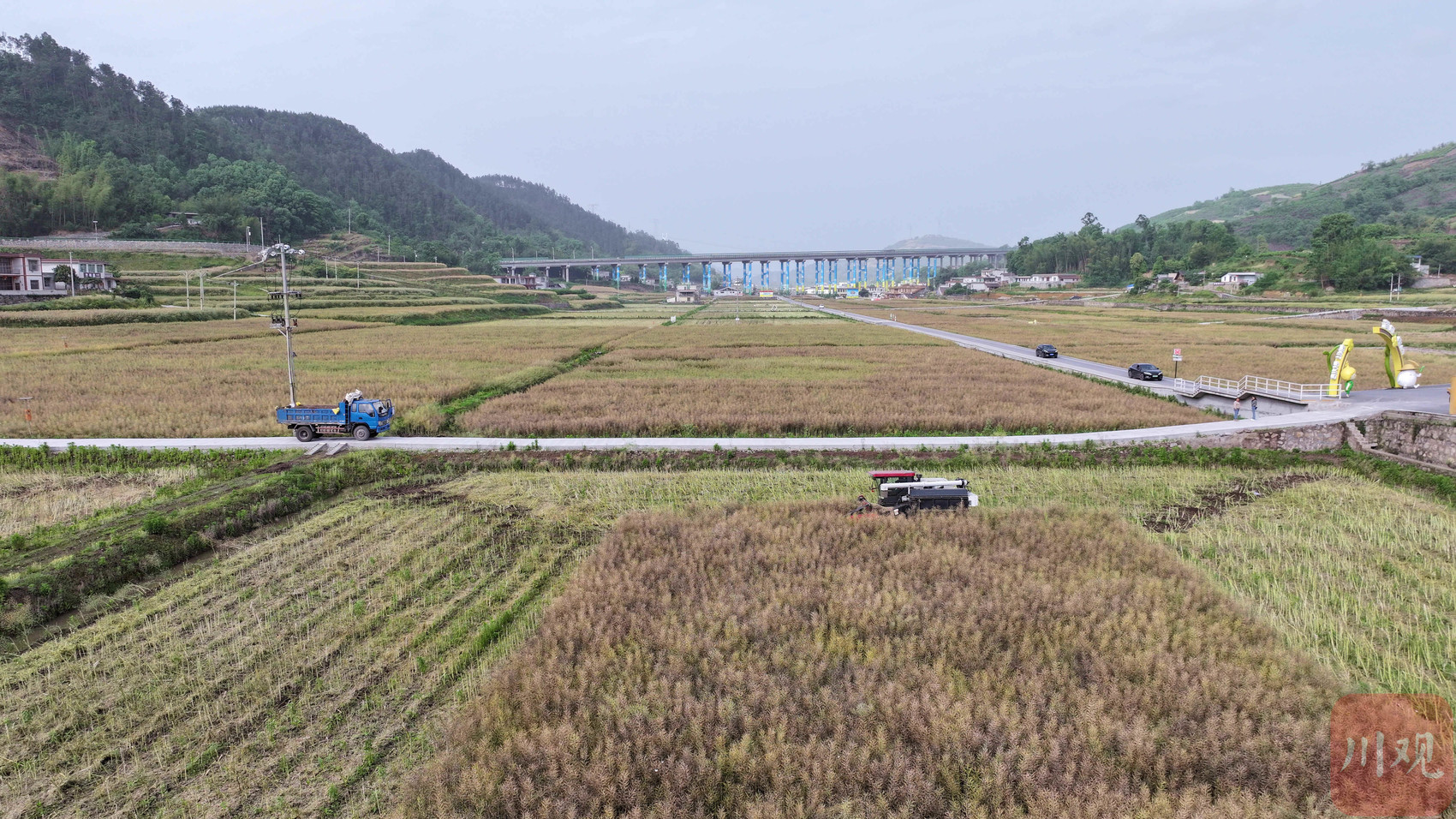 谷雨至,农事忙。4月20日,在宜宾市高县庆岭粮油现代农业园区的连片高标准农田里,沉甸甸的油菜荚压弯了枝桠,农机手娴熟地驾驶着大型收割机在田间来回穿梭,抢收成熟油菜。