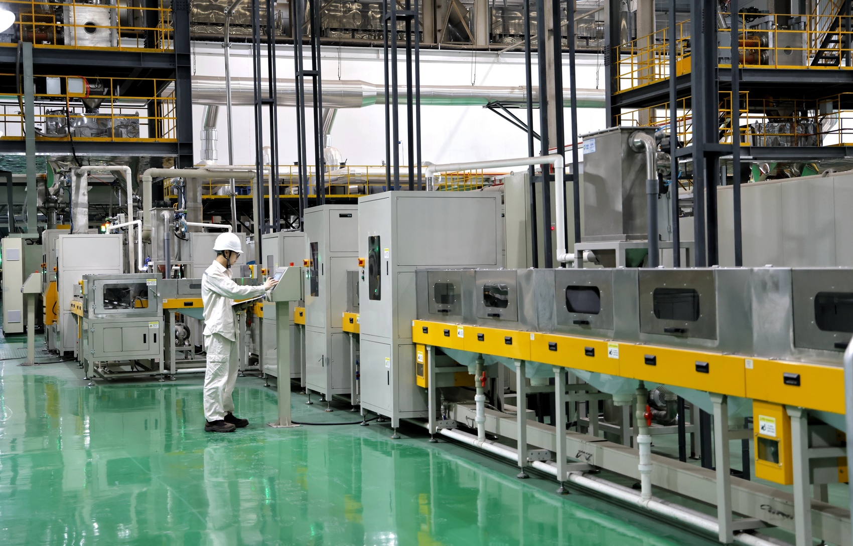 四川协鑫锂电科技有限公司内,工人正在操作全自动生产设备。仁寿县委宣传部供图