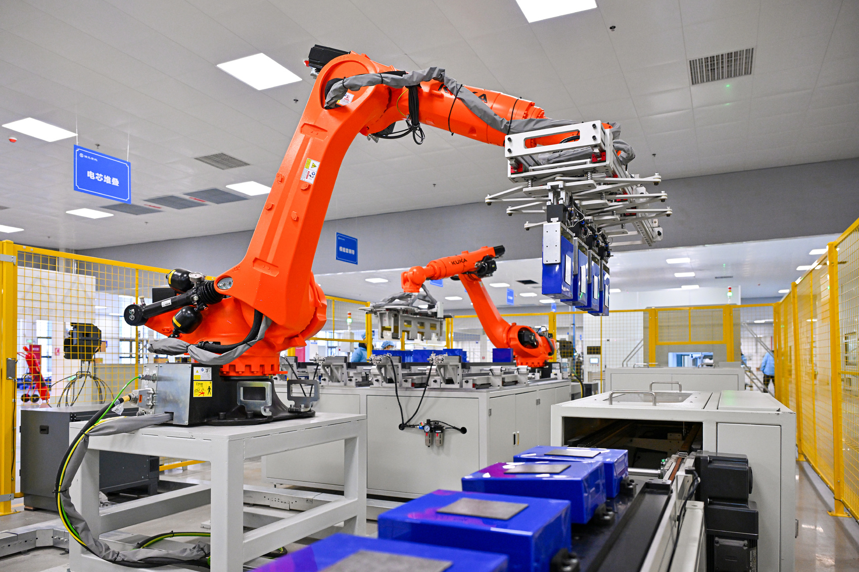 在储元世纪自动化生产车间,机械臂正在搬运电池模组。仁寿县委宣传部供图