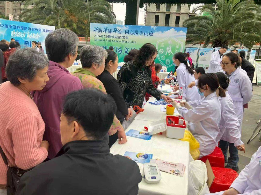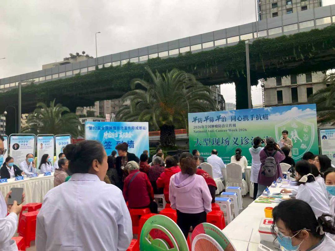 2026年4月15日—21日是第32个全国肿瘤防治宣传周,今年宣传周的主题为“早防早筛早治 同心携手抗癌”。4月21日,由成都市癌症防治中心(成都市第七人民医院)、成华区卫生健康局主办,成华区癌症防治中心(成医附二院·416医院)、成华区疾病预防控制中心承办,成华区府青路社区卫生服务中心、猛追湾社区卫生服务中心、成华区人民医院、成华区第七人民医院、成华区中医医院、成都市肿瘤心理专委会、成华区医学会、成华区公安分局等多家单位协办的2026年全国肿瘤防治宣传周活动启动仪式在财富又一城广场举办。该区整合多方医疗资源,在宣传周期间开展系列防癌科普与惠民服务活动,让科学防癌理念深植人心,为辖区居民筑牢健康屏障。
