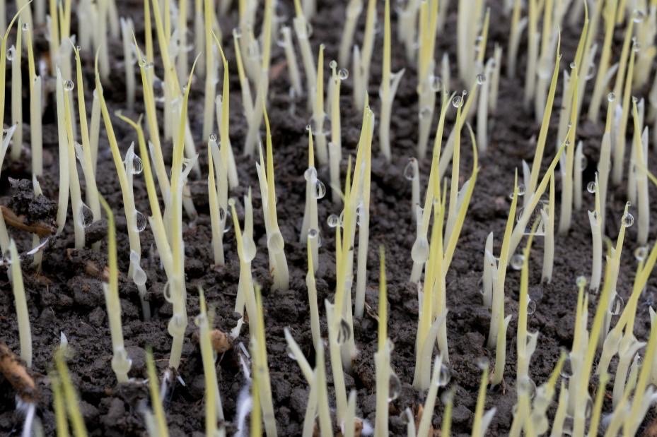 “育秧是个技术活,出苗这一步差一点,后面机插和产量都受影响。”王益站在秧盘旁,一边整理覆盖的彩条布一边说。播种好的秧盘整齐码放在向阳处,靠自然光保温保湿出苗,既省人工又低碳环保。“我们用空盘扣在顶层压稳,再把彩条布盖严实锁住湿度,等秧苗长到1厘米至1.5厘米高左右,就可以结束暗化,送去秧田正常管理了。”