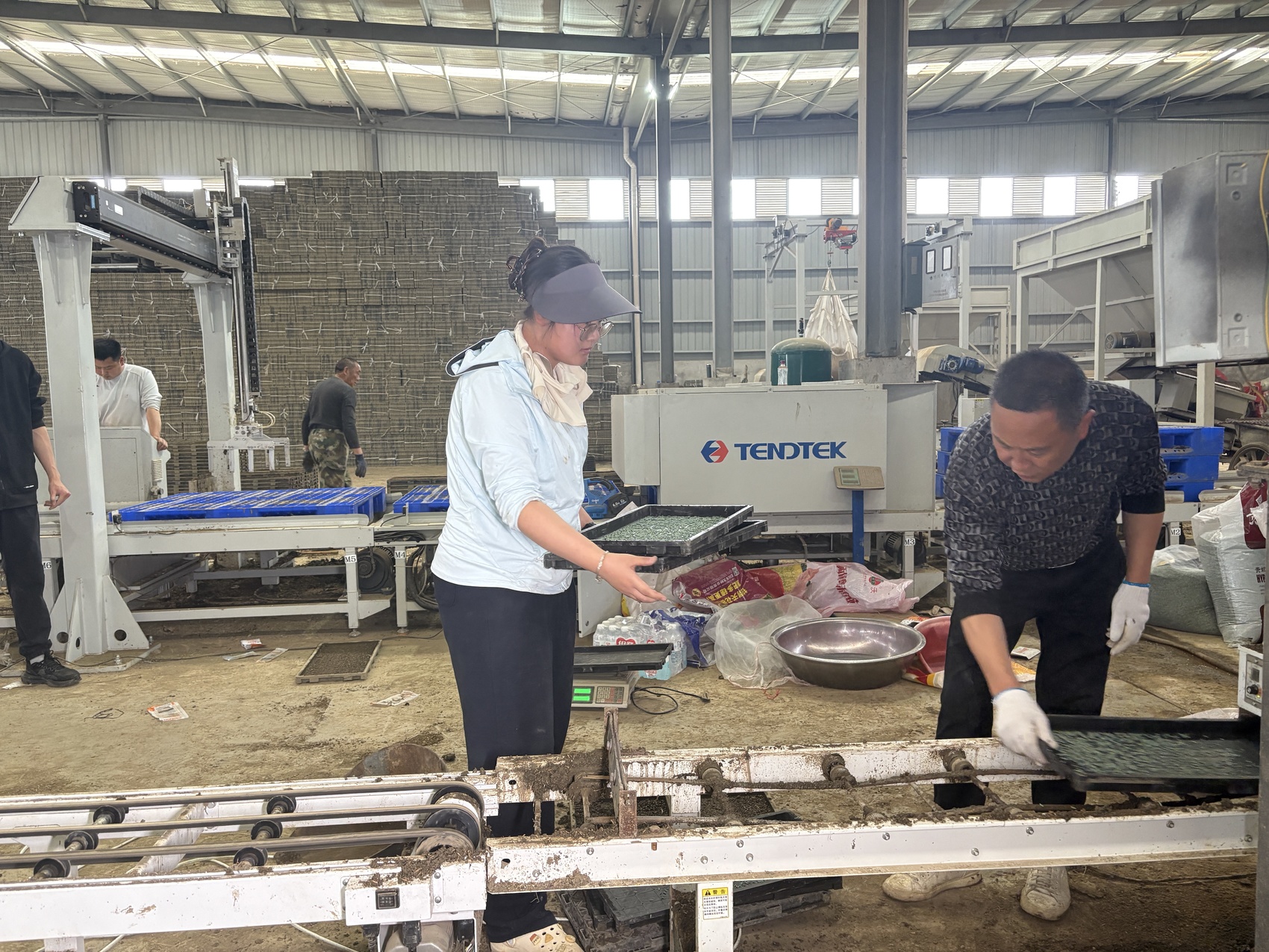 技术有了,如何让更多农户用上才是关键。旭成农作物种植专业合作社水稻种植规模达7000余亩。王益告诉记者,今年计划培育45万张秧盘育秧,目前已完成20余万张。围绕散户育秧成本高、效率低、秧苗质量参差不齐的难题,合作社也配套中小型流水线育秧设备,简化订单流程,灵活承接小批量育秧需求,还为周边1.5万余亩农田提供优质秧苗。