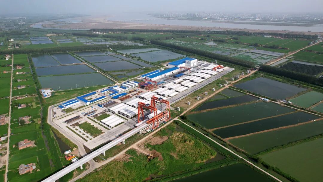 “我们是宁淮城际铁路全线占地面积最大、唯一拥有新型40米高铁箱梁预制能力的制梁场,共承担40米箱梁301榀、32米箱梁587榀、24米箱梁39榀的预制和架设任务,箱梁架设最大运距达25公里,施工体量大、技术要求高。”中铁十六局宁淮城际淮安二号制梁场负责人马胜辉说。
