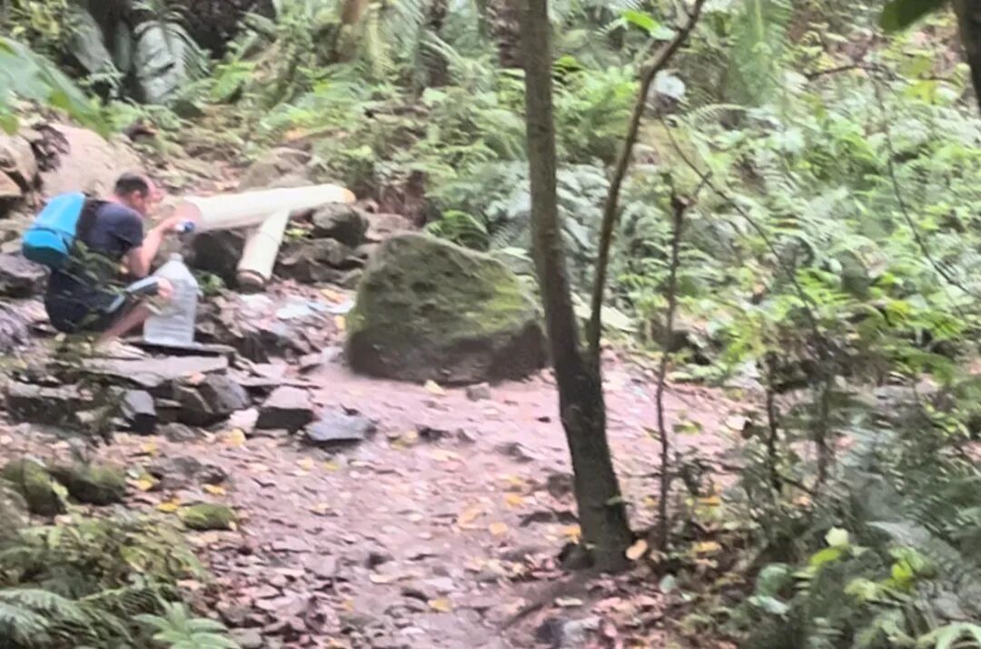 上周六,在帽峰山和富路西侧的一处山坡顶上,树木葱郁,不少市民选择在这里休憩或草坪野餐,享受午后闲暇时光。在山坡上一个僻静的角落,记者发现有人用卡式炉生火做饭。