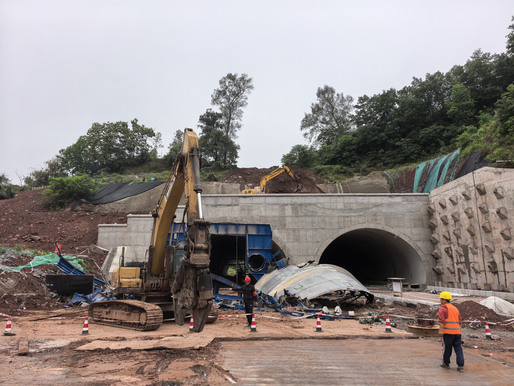在龙翔西路(二段)项目东侧隧道口,挖掘机正紧张拆除施工装置。“拆除后隧道洞口将全面呈现,力争5月底通车。”泸州市建管一中心驻龙翔西路(二段)项目负责人刘波表示。