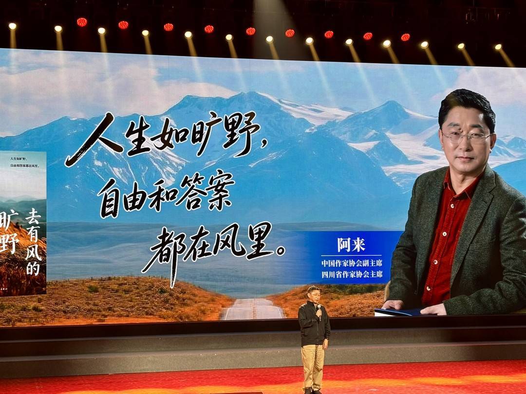 著名作家阿来在台上做了一场关于阅读的分享。阿来认为,当下阅读面临表面化困境,创作者和出版方须坚守高质量内容。他以滕王阁、岳阳楼等名楼为例说明,建筑实体可毁可建,但诗文长存,文化创造才是民族延续的根本。阅读不应止步于功利性获取,而应承担起文化传承与国民精神塑造的深远使命。
