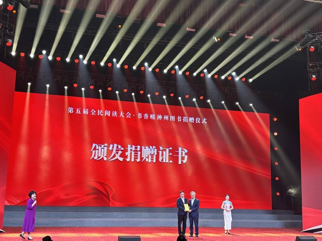 在捐赠环节中,主办方向捐赠单位代表颁发证书,并向受赠单位代表移交图书。捐赠单位与受赠单位代表分别上台发言,分享捐赠背后的故事。随后,“书香方舟·特教同行”图书捐赠项目、AI鹅伴机器人项目、新阅读公益领读计划等三项公益项目正式启动。
