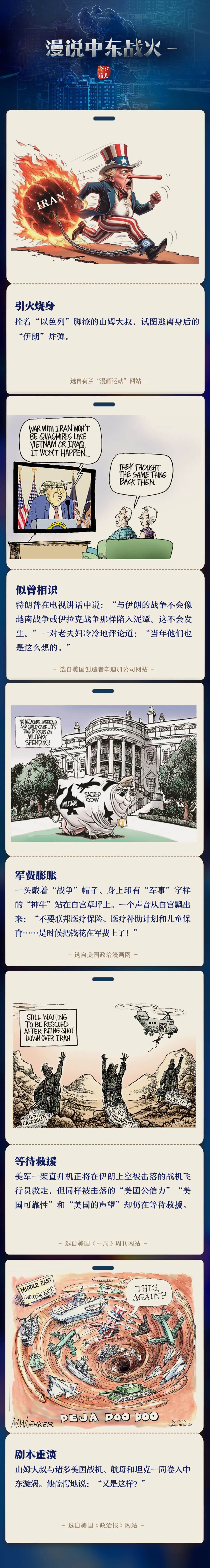 停火期限即将到来,24小时内霍尔木兹海峡“开了又关”,战争阴云从续近2个月,特朗普宣称不会让美国陷入战争泥潭,白宫力推军费膨胀却削减民生开支,而外媒笔下的漫画,以直白犀利的笔触,戳破了战争的荒诞与代价。