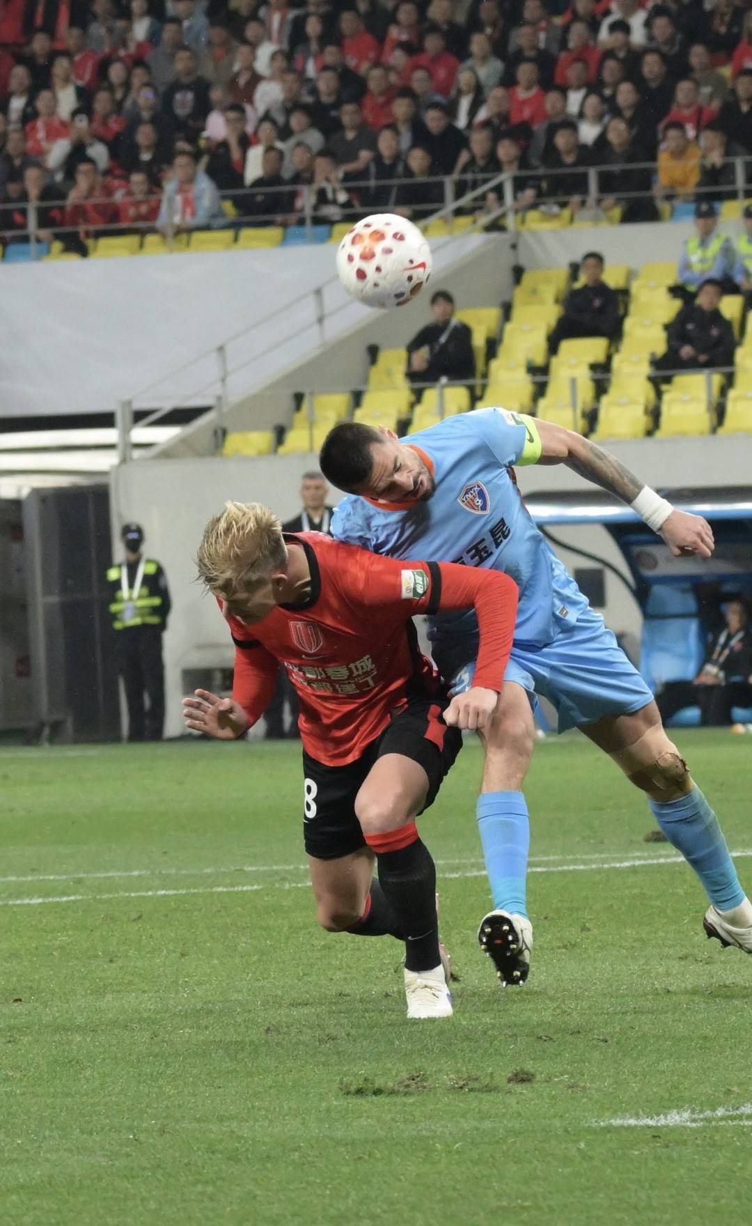 下半场比赛,贺一然替换王东升登场,随后,费利佩也替换拜合拉木上场。费利佩上场后,成都蓉城祭出“双塔”战术,进攻时,费利佩和索罗金两个高点在禁区内抢点,罗慕洛、韦林顿、韦世豪轮番向禁区输送“炮弹”,这一调整立竿见影,比赛第53分钟,罗慕洛边路传中,索罗金头球攻门,皮球划出一道弧线慢悠悠吊入球门死角,玉昆门将虽奋力扑救,但鞭长莫及,1-1,成都蓉城将比分扳平。