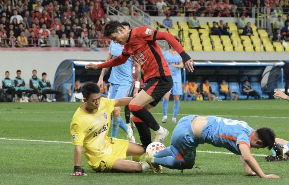 补时阶段,云南玉昆围攻成都蓉城球门,打入一粒绝平进球,不过,因为越位在先,被判进球无效,这让全场蓉城球迷惊出一声冷汗。
