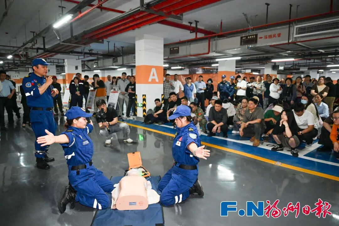 在观湖郡地下停车场,蓝天救援队将这里临时改造成了一间“战地急救课堂”,队员们从判断意识、胸外按压到人工呼吸,从简易担架制作到伤员搬运技巧,手把手指导居民轮流动手操作。