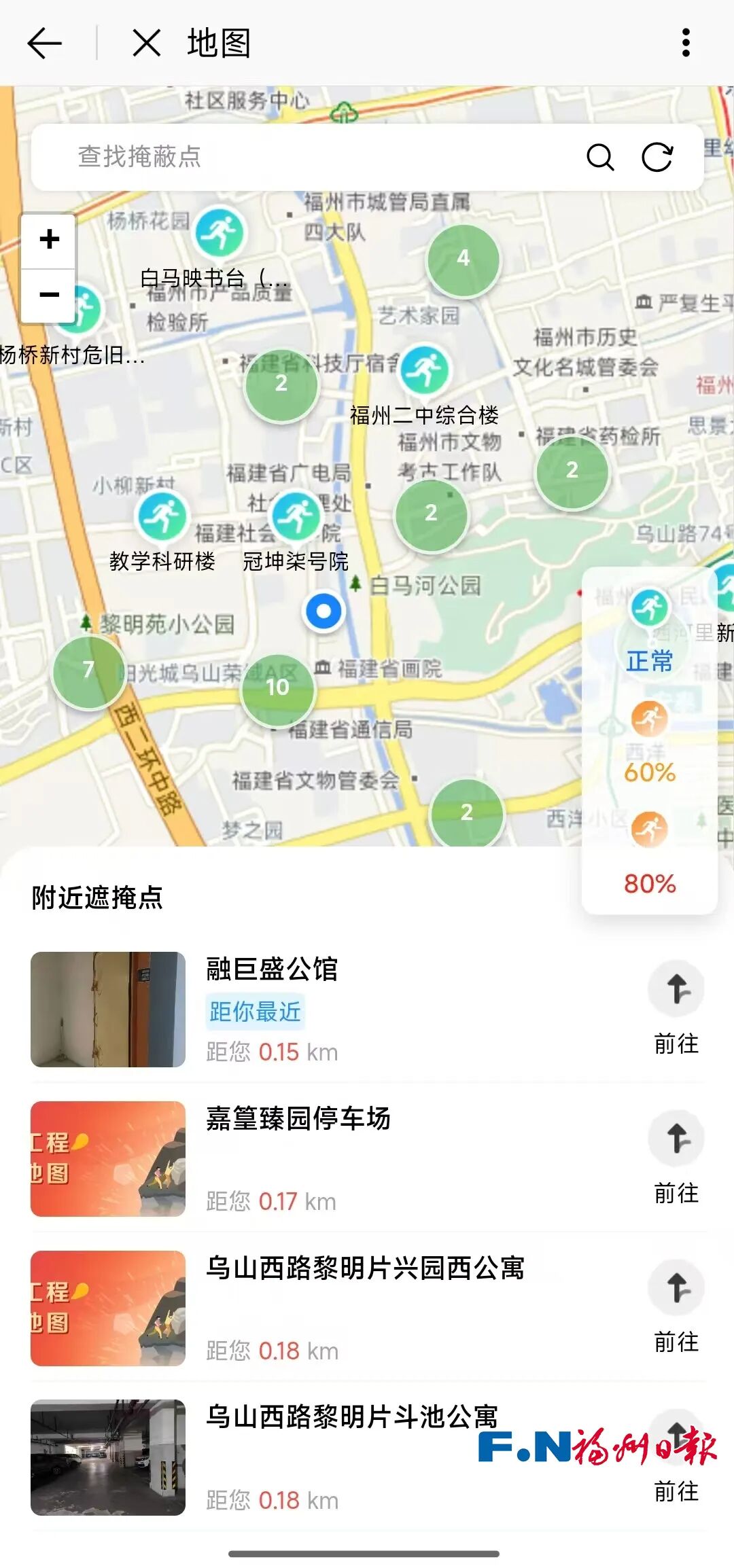 市国动办相关负责人介绍,近年来,福州新建的小区大多依照人防标准,同步配建地下停车设施。由市国动办研发的人防导航平台已正式接入“e福州”APP,市民可搜索“人防服务”,或在“民生服务”板块中寻找“人防服务”,进入页面后即可查找最近的人防工程、查看内部图片及拥挤程度,实现一键导航。