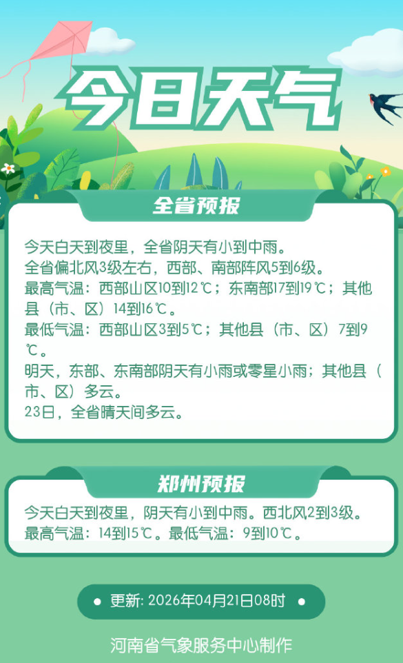 今天(21日):全省有小到中雨