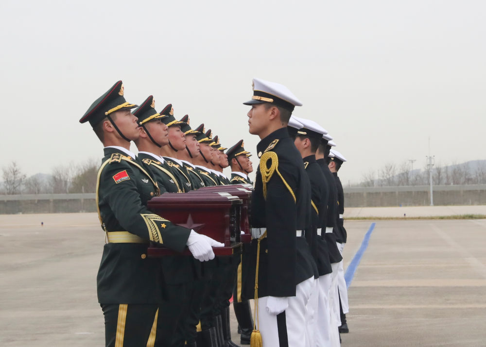 退役军人事务部、中央宣传部、中央对外联络部、中央网信办、外交部、国家发展改革委、财政部、中央军委政治工作部等军地有关部门组成的中方交接代表团组全体人员、中国驻韩国大使馆相关人员共同见证迎接志愿军烈士回家。