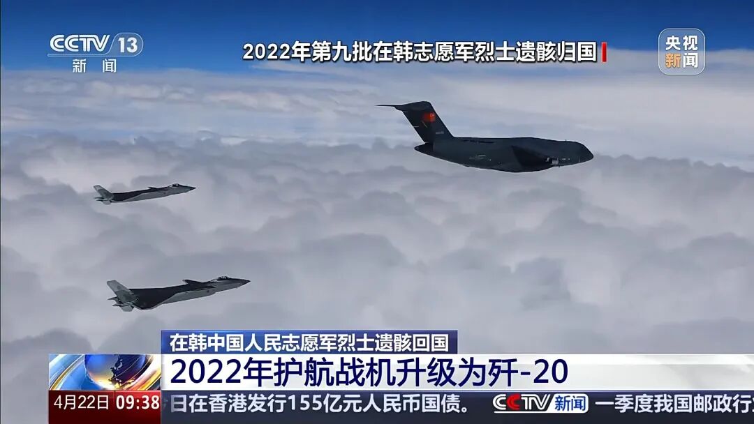 早期,歼-11B战机伴飞护航,为英烈归途筑起坚实屏障。2022年9月16日,第九批志愿军烈士遗骸归国时,歼-20隐形战机接替歼-11B,与运-20组成编队,以大国空军的精锐力量为英烈保驾护航。