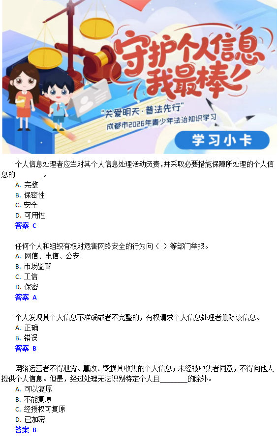 “关爱明天·普法先行”成都市2026年青少年法治知识学习火热进行中。今天的学习卡已上线,“趁热”看!