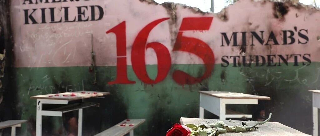 △伊朗德黑兰北部,一朵花被放置在象征米纳卜学校的纪念处(资料图)