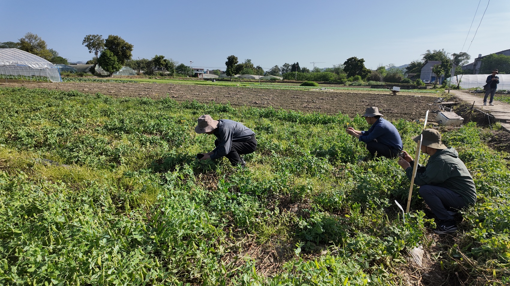 与会专家穿行田间,边察看边记录。“西南地区丘陵多、气候湿润,新品种要丰产更要适配本地条件。” 四川省杂粮创新团队首席专家叶鹏盛提到,南充柑橘、蚕桑产业发达,与豌豆搭配种植能让土地效益最大化。