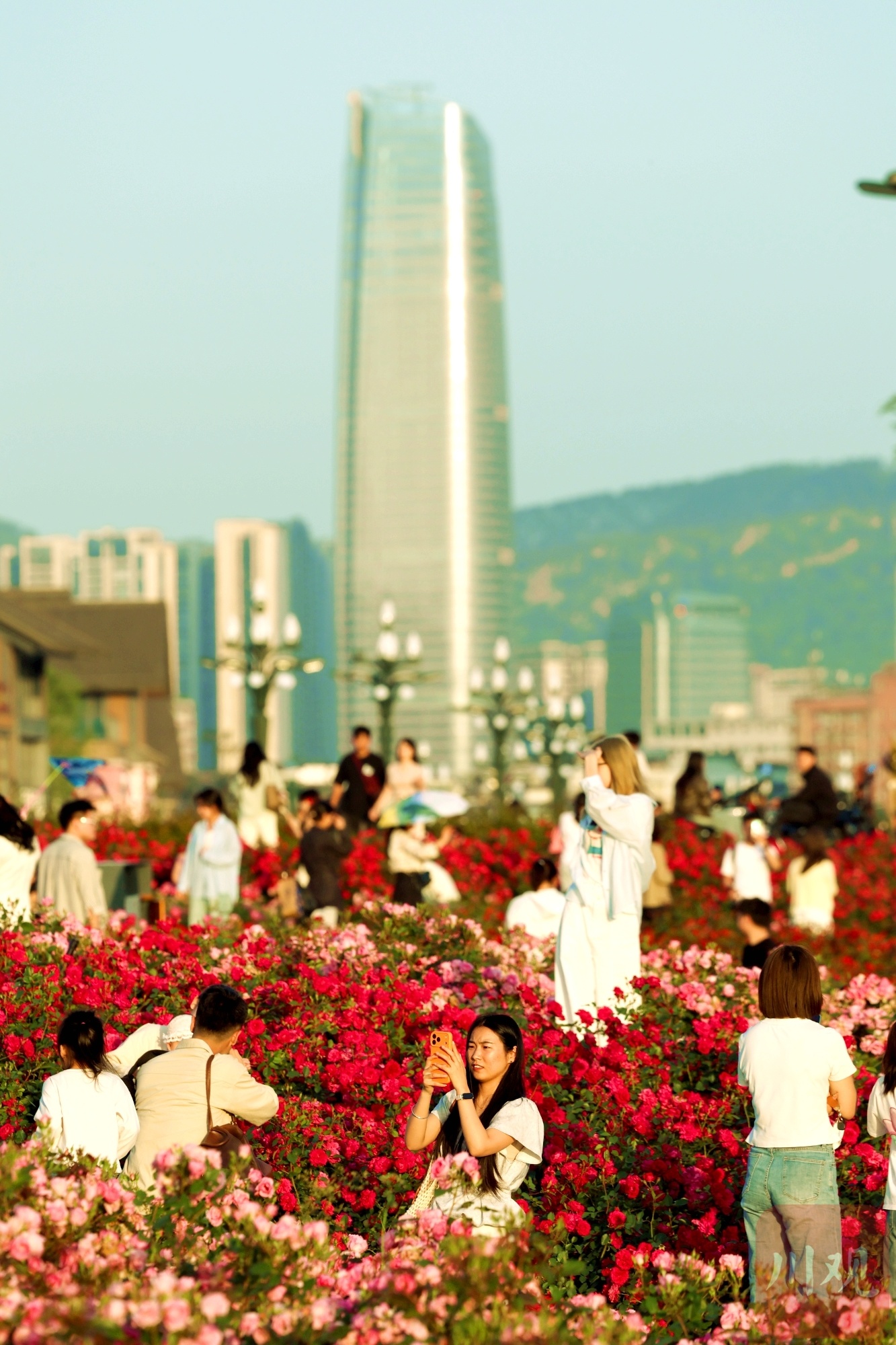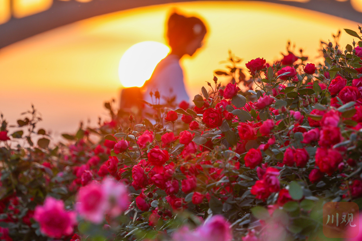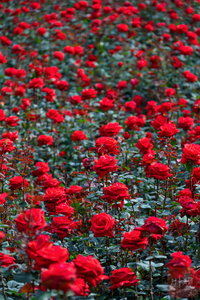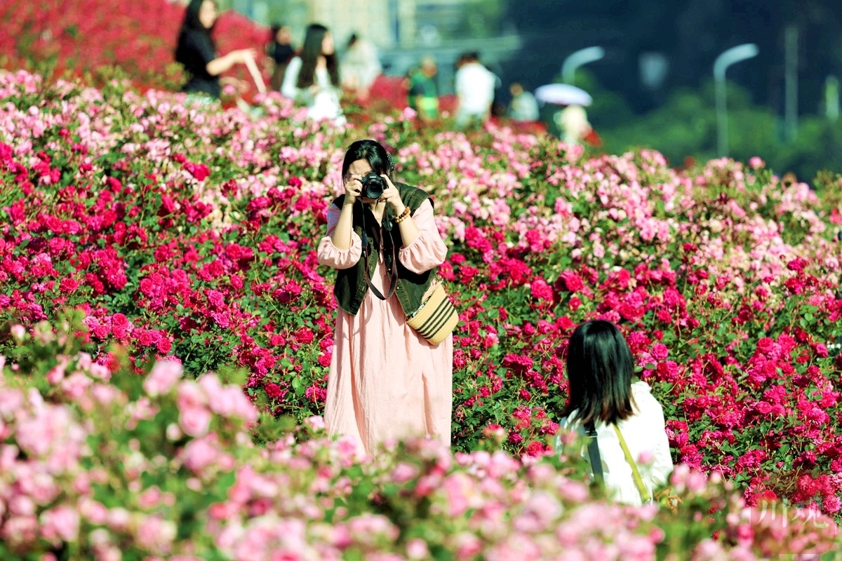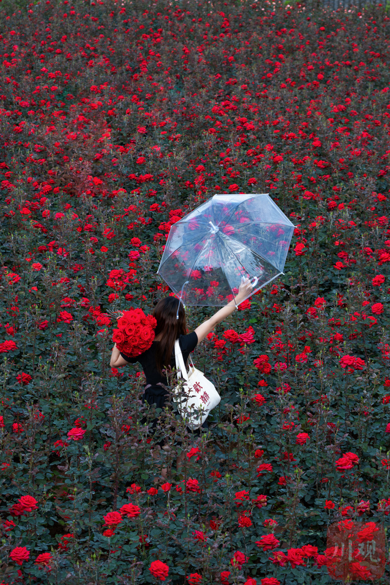 4月16日,成都市龙泉驿区马坝村三组的花田里玫瑰迎来盛花期,吸引众多市民在玫瑰花海里打卡拍照。C视觉摄影师 贾科 摄
