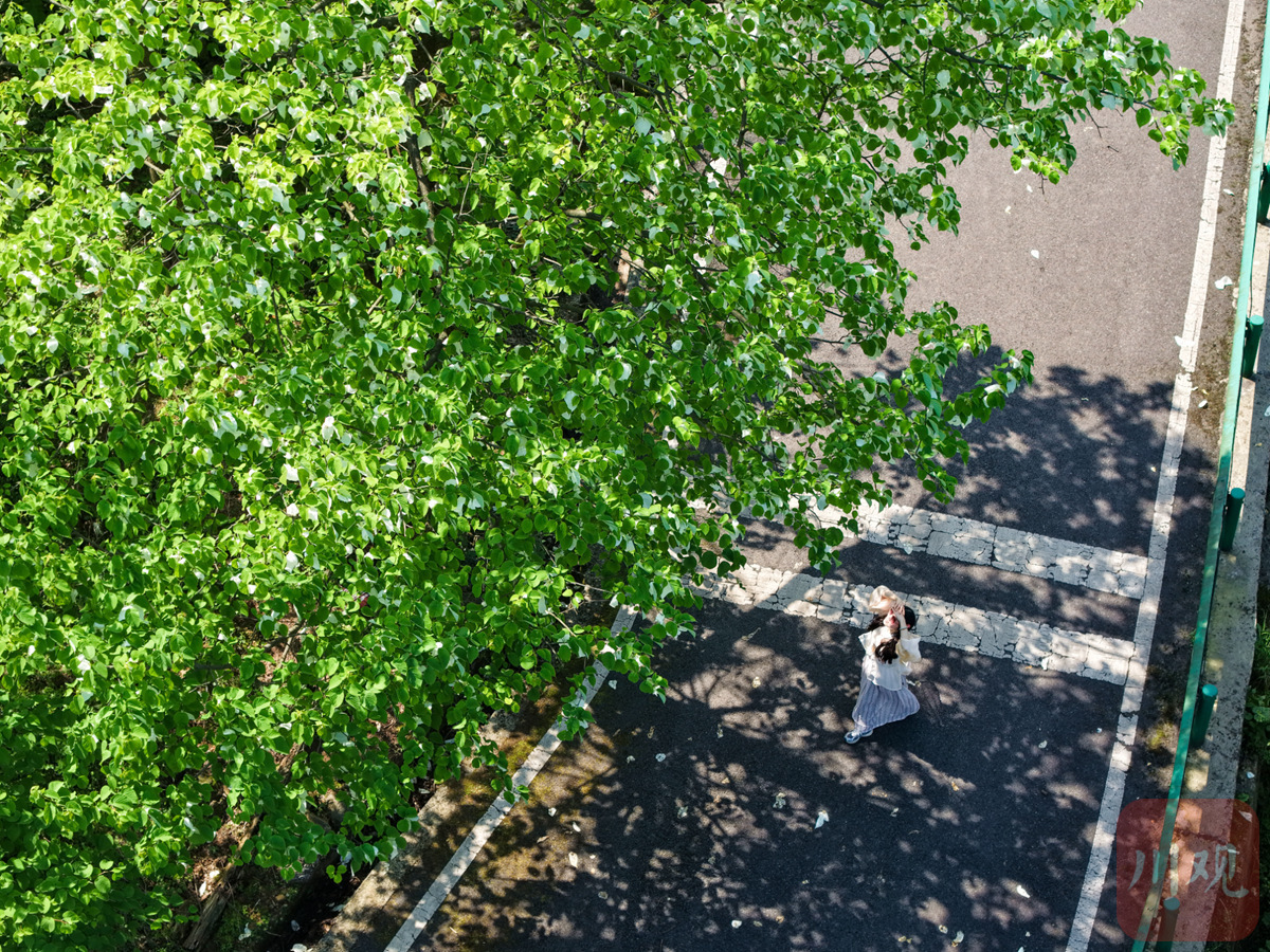 4月19日,雅安荥经县龙苍沟的珙桐正值盛花期,游人在“鸽子花”下留影。C视觉摄影师 李昀波 摄