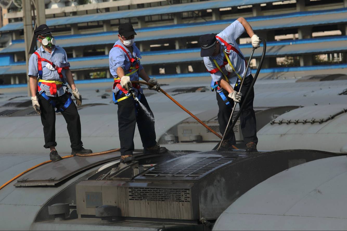 为确保夏季车厢空调使用正常,成都车辆段上部车间都会逐一对每台车的空调系统进行吹尘清洗。