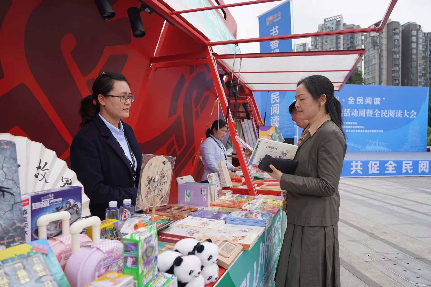 启幕现场设置了多个“川行书页间”展位,上面整齐摆放着人文历史、科普新知、少儿文学等多个品类精品书籍,吸引不少市民驻足翻阅、选购。