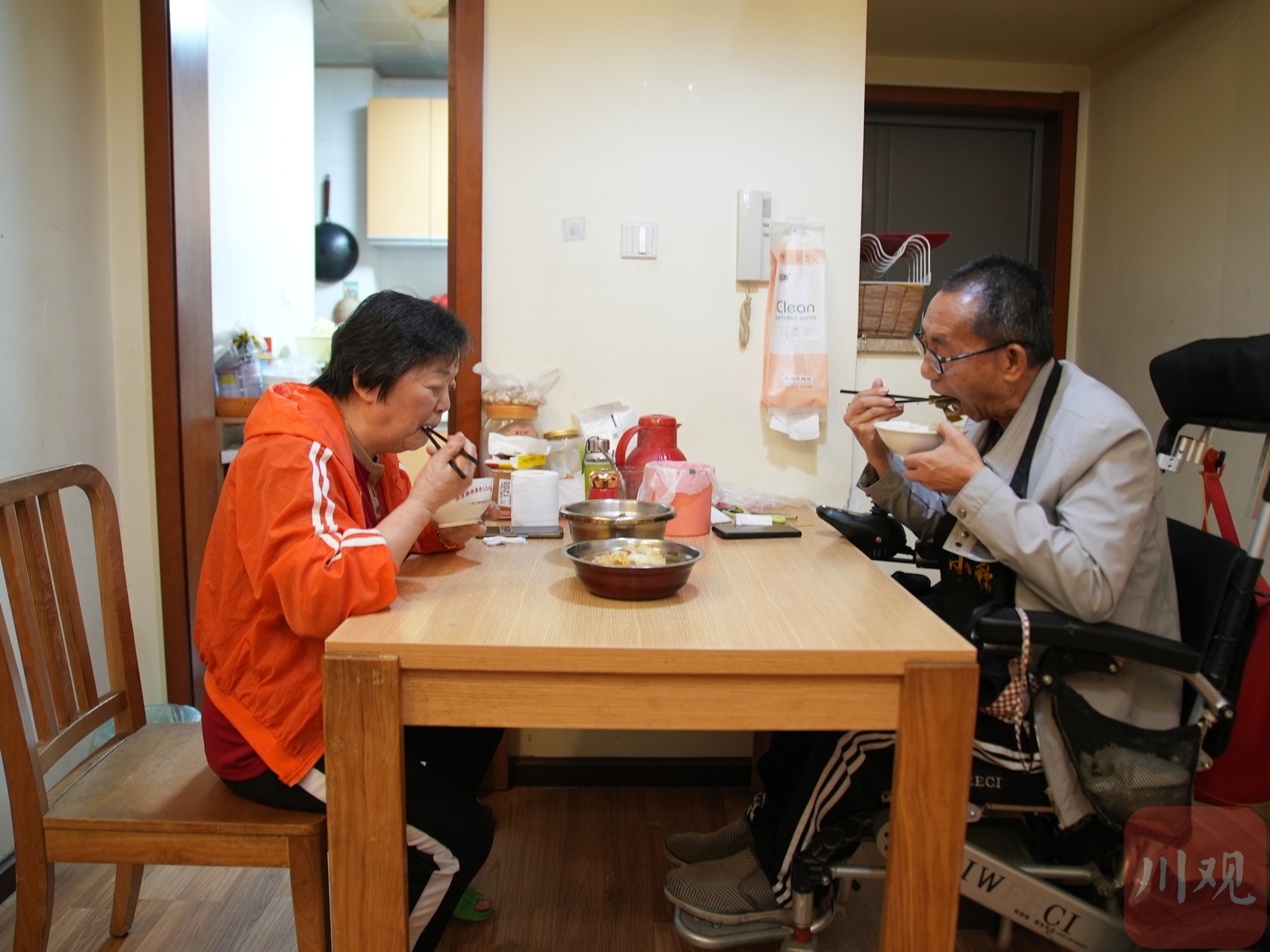 送走护理员后,罗先泽大爷和老伴开始吃午饭