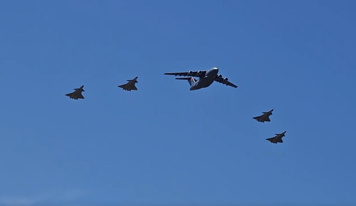 4架歼-20战机护航伴飞