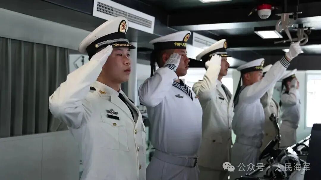 鄂尔多斯舰官兵行庄严举手礼