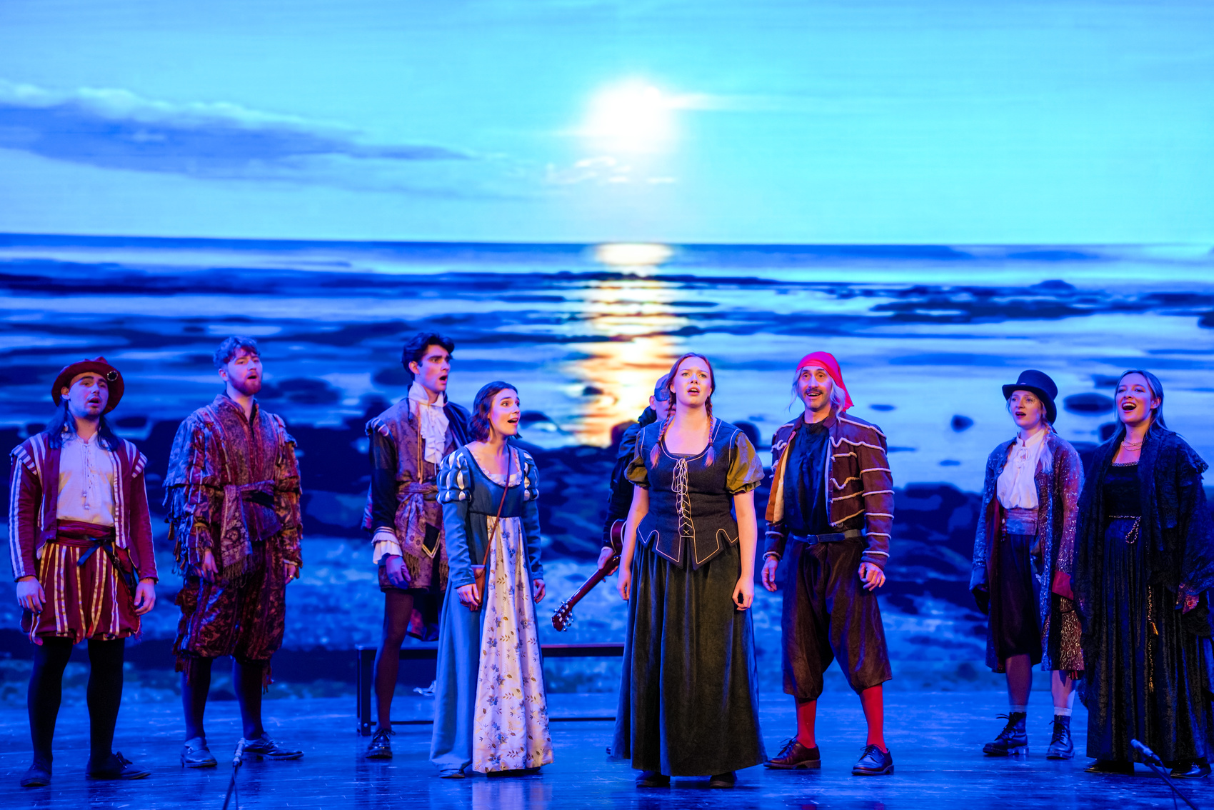 十人团队撑起整部喜剧,简约舞台反显表演功力,古典服饰与现场小提琴交织出四百年前的英伦温度,这才是戏剧本真的力量