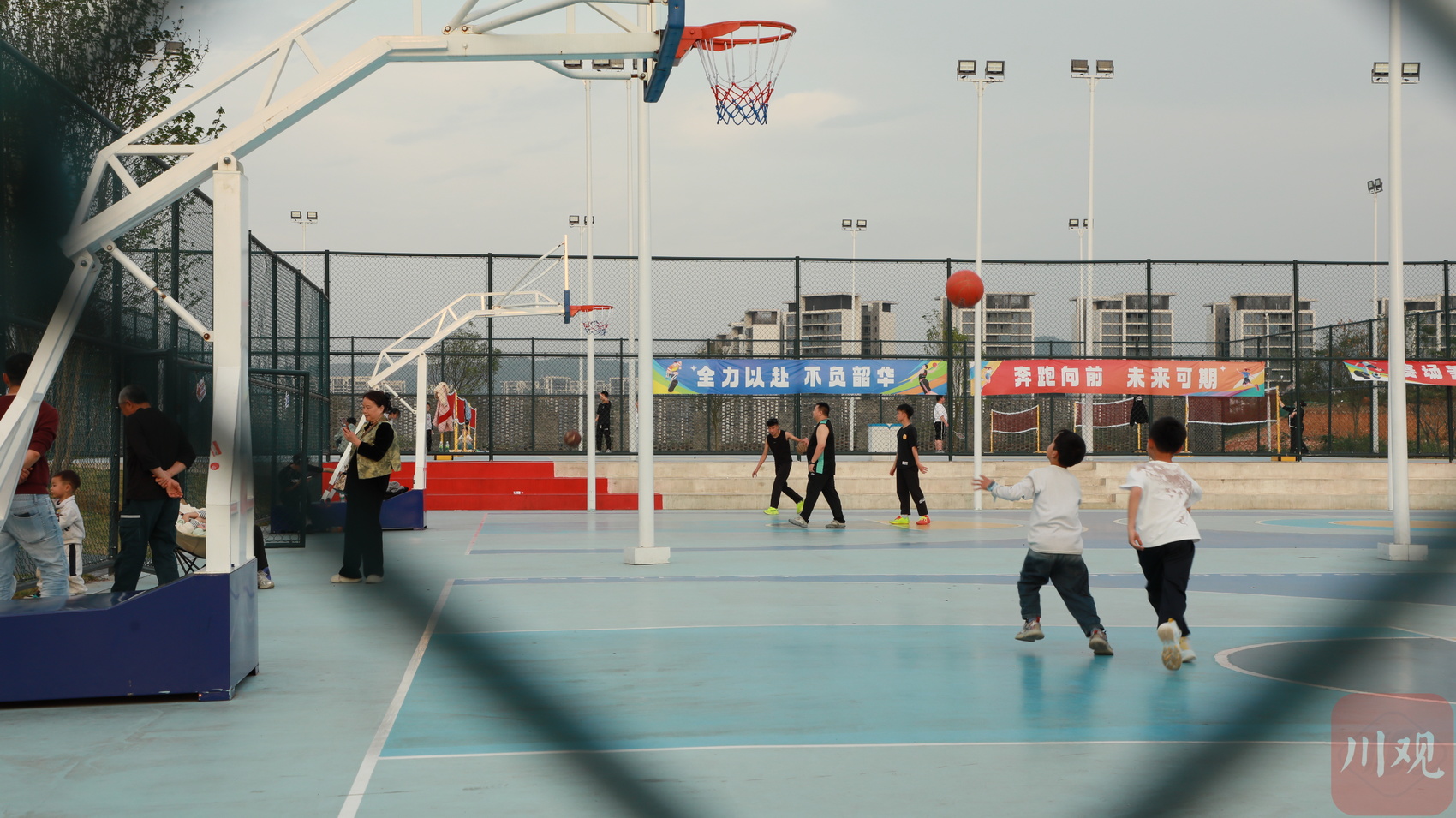 眉山时尚运动中心向北34公里,今年4月正式开园的眉山天府新区体育公园,则是用“体育惠民”串联起了“自然休闲新场景”。“公园与清华附中天府学校相邻,打破校园体育与城市公共体育的边界,既承接学校体育教育的延伸功能,也为市民搭建起与优质体育资源互动的桥梁。”眉山环天建设集团有限公司项目负责人陈渊说,公园有篮球场、足球场、网球场、乒乓球馆等12个体育场景和儿童游乐场,所有体育设施全部免费开放。“交通方便,从我家骑车20多分钟,开车的话目前停车免费,场地设施专业标准。”陈立林正在和几位小伙伴在篮球场“激战”,目前读大学的他,很爱来这里锻炼。