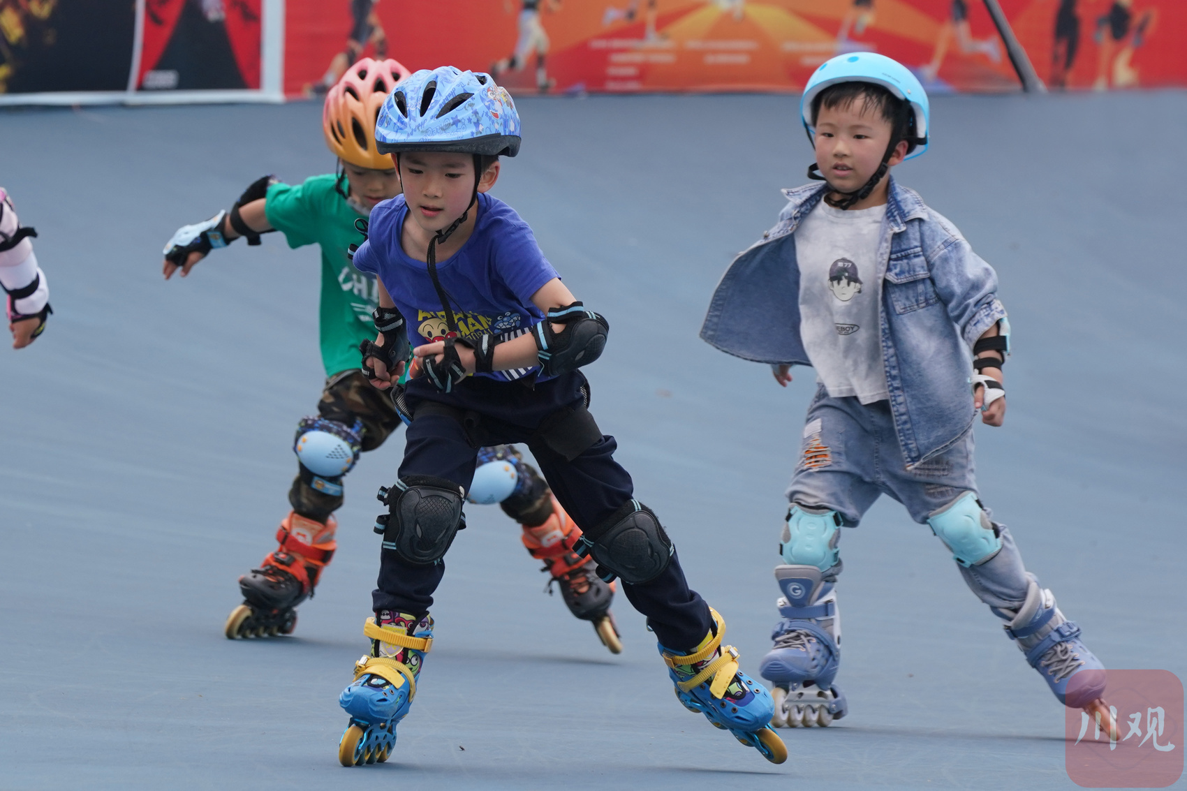 孩子们在学轮滑。