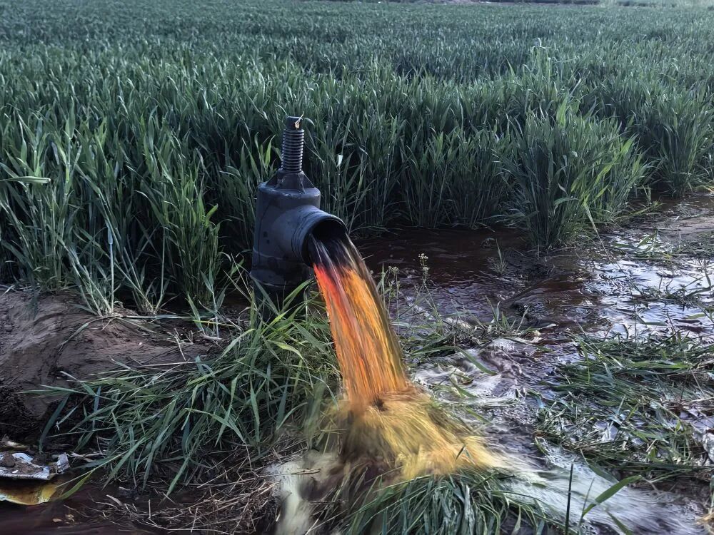 4月20日,蠡县蠡吾镇黄庄村附近农田灌溉井水呈红色。新华社记者杜一方 摄
