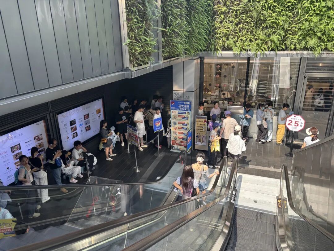 截至上午10:45,万象天地店排队队伍持续延长,官方标注的等候时长已达到2.5小时,为方便市民提前规划等候时间,门店在排队区域不同点位均设置了清晰的排队时长提示标识,让消费者能直观了解等候情况,合理安排行程。