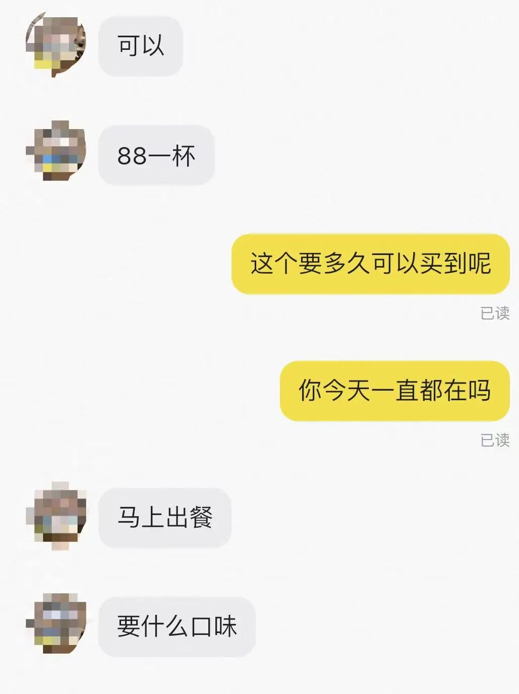 此外,黄牛还提供多种交付方式,除了现场自取外,还支持闪送、代送等。此前还有黄牛透露,可提供省外快递寄送服务,但并不推荐,坦言“路费太贵,且茶饮长途寄送后口感会受影响”。