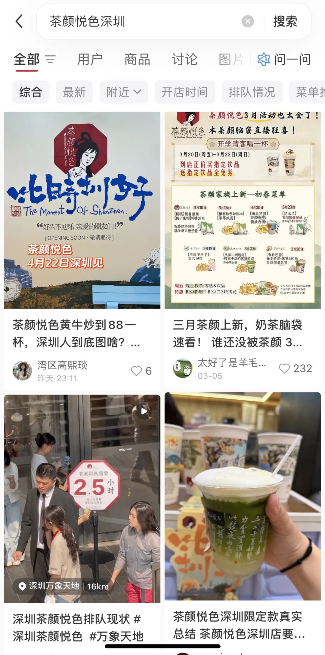 在社交媒体平台,关于“茶颜悦色深圳店”的相关帖子热度颇高。