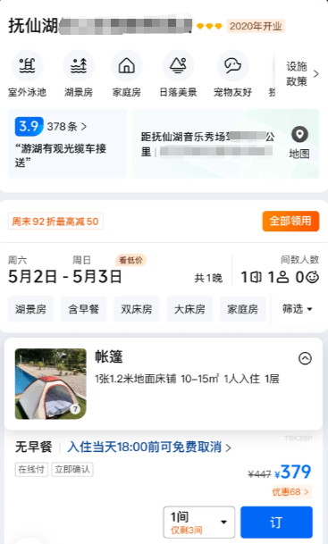 两家酒店的“帐篷房”目前均已经下架。据网络图