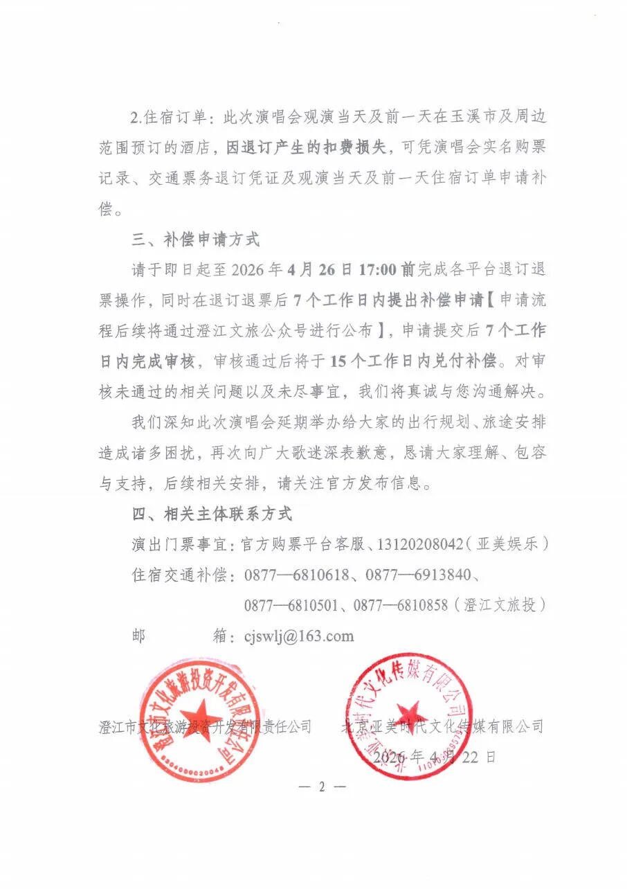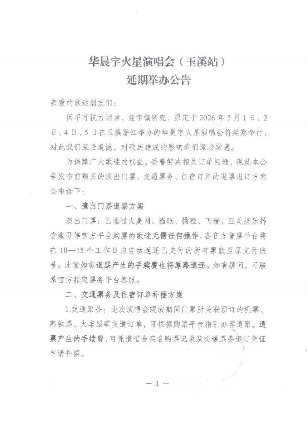 当晚,火星演唱会官方微博发文公布退票方案。