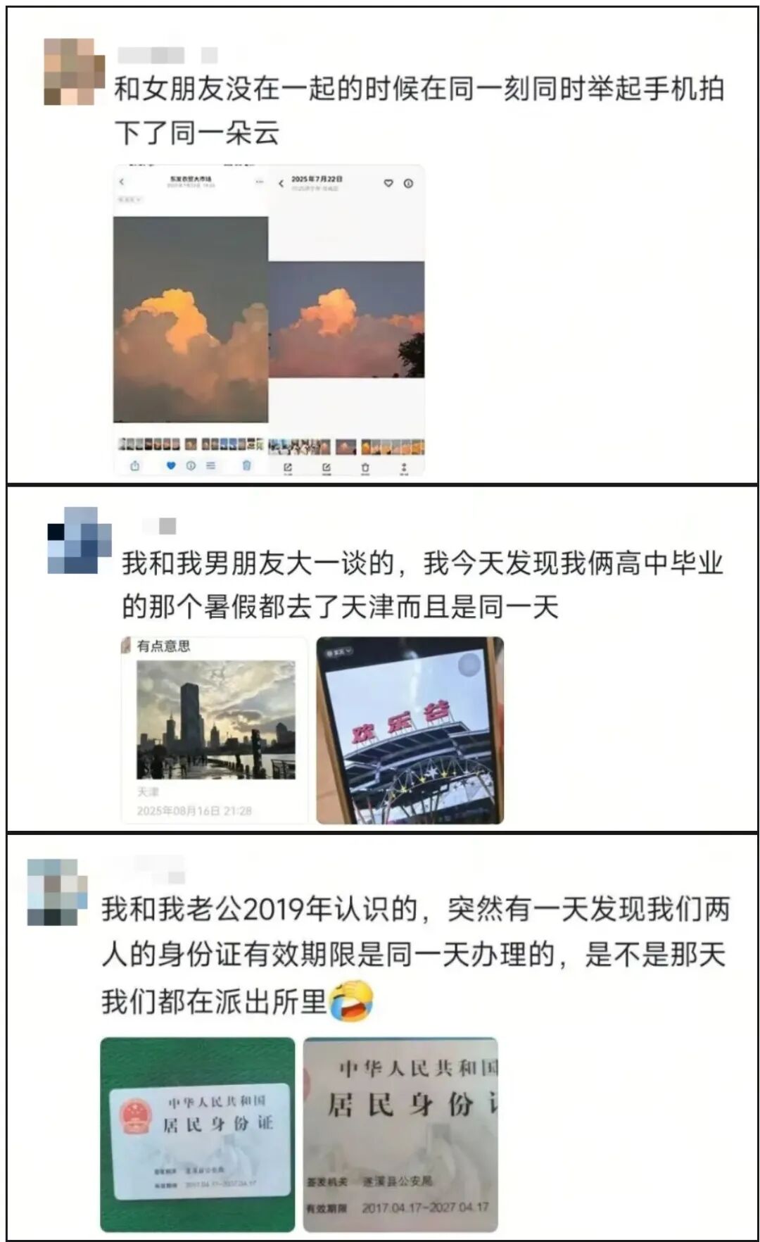 “相爱的人总有点默契在身上”,这一热帖的留言区里,许多网友“现身说法”。没有商量却买了同款衣服,买的西瓜刚好凑成一份,同一时刻拍下同一朵云……这些暖心日常,让相濡以沫的爱情瞬间有了模样。