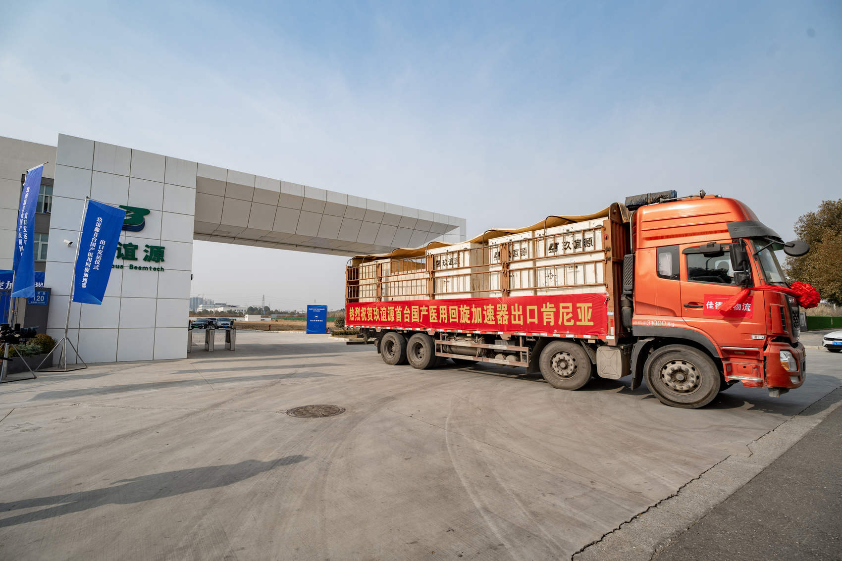 四川玖谊源粒子科技有限公司大门前一辆装载有核医疗产品的货车