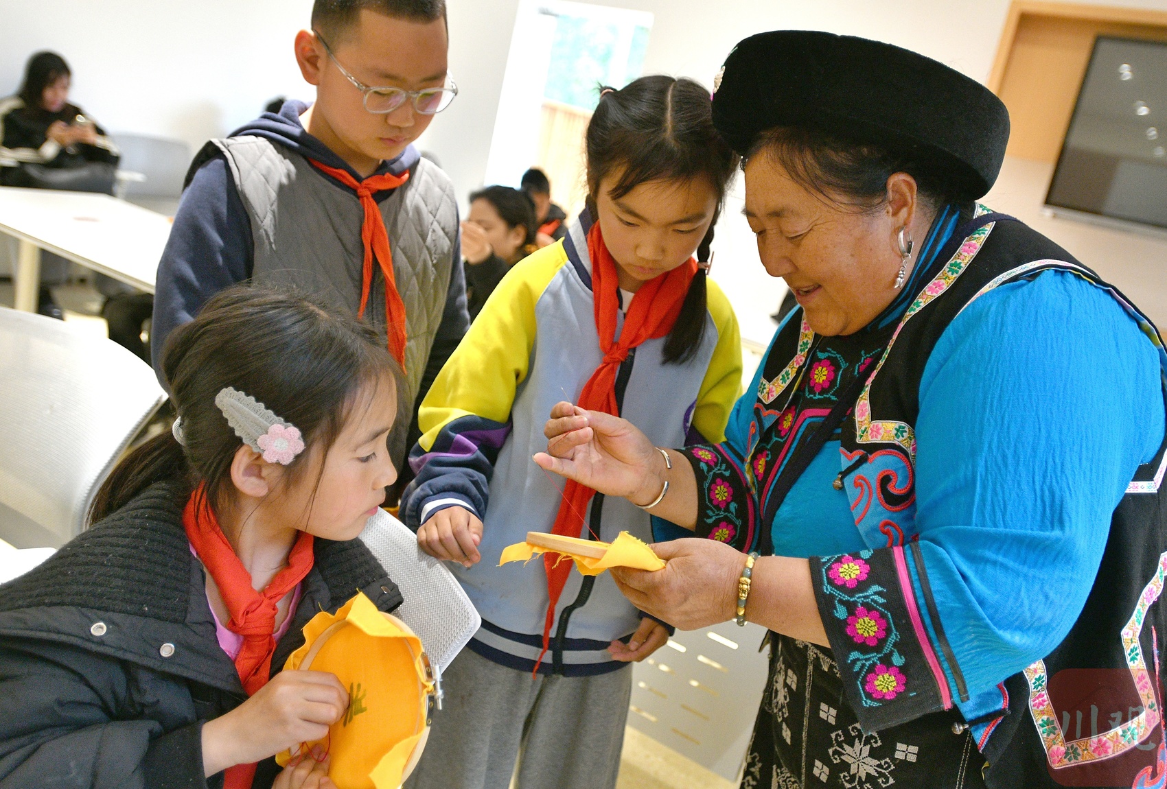 羌绣传承人王露琼在指导学生羌绣。