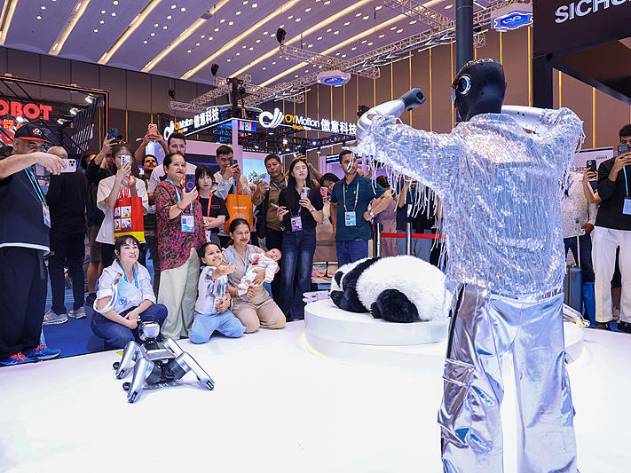 参展商还在忙着接待客人,展品已经自己跑出去逛展了。这可不是玩“抽象”,这就是正在举行的第139届广交会真实现场。