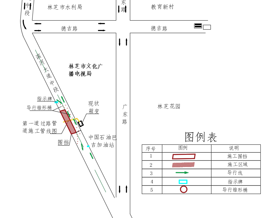 为保障滨河大道外电管网接驳项目安全施工,同时保障过往行人、车辆通行安全,现决定对滨河大道中段、滨河大道中段与工布大道交叉路口实施半封闭交通管制,现将有关施工安排公告如下: