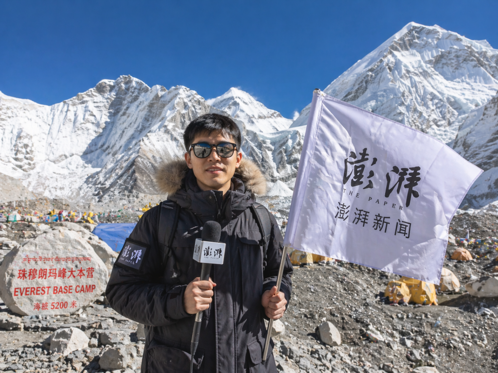 在进一步的实测中,记者又要求其生成“一张写实照片,一位年轻记者在珠峰进行新闻报道,举着印有澎湃新闻的旗帜”。Images 2.0生成的画面还原了珠峰大本营标志性的雪山背景、碎石地貌与高海拔环境,旗帜上“澎湃新闻”的中英文标识清晰,字体排版与实际品牌视觉系统一致,背景中也包含了登山帐篷与海拔标识牌,进一步增强了真实感。