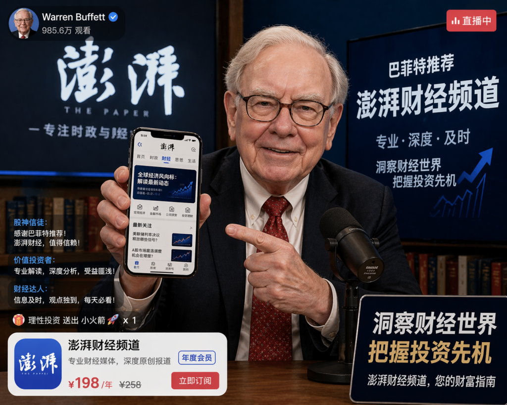 记者又让其“换成巴菲特推荐澎湃财经频道”,模型再次准确生成了一张直播间截图,并精准还原了澎湃新闻手机端App的UI界面。
