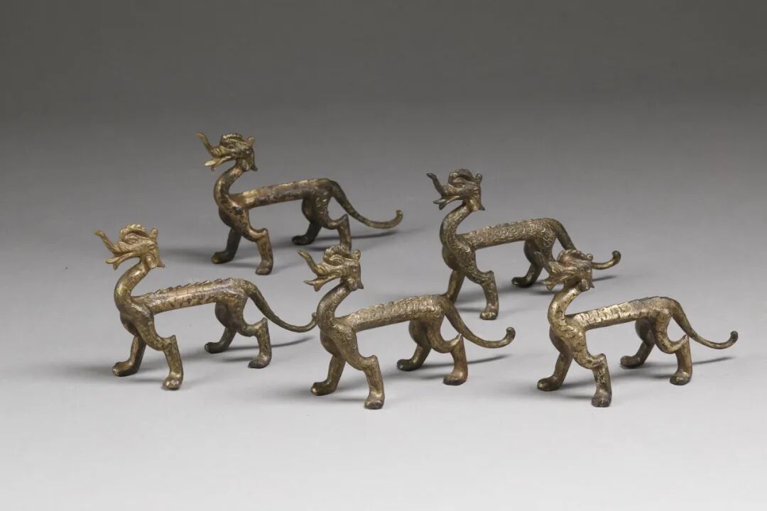 5条鎏金铜走龙均长约9厘米、高约5厘米,嘴巴大张、舌体前伸,四肢呈奔跑姿态,周身鳞片纹路清晰可辨,看上去又“凶”又有“灵气”。陕西省考古研究院考古博物馆办公室主任刘思哲表示,唐代道教盛行“投龙”仪式,皇家常将金龙玉简投入名山大川,以此向神仙传递祈愿,墓中的鎏金铜走龙推测是希望百年之后能借龙力飞升。
