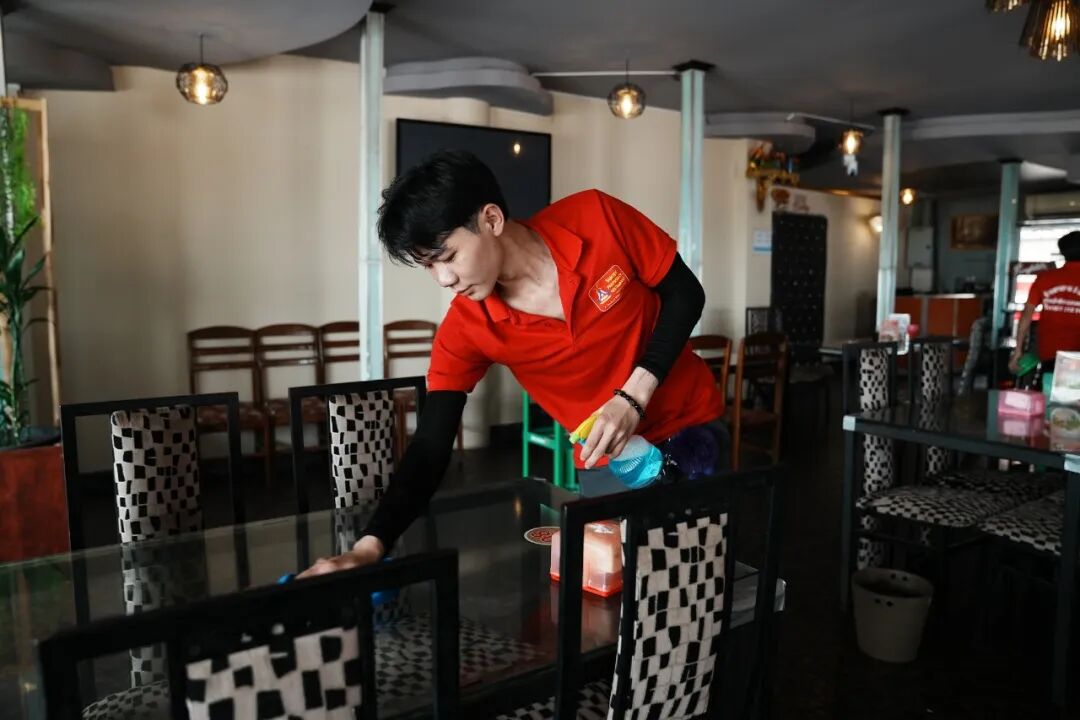 餐厅里的老挝小伙说,他坐过中老铁路列车去孟赛走亲戚。